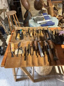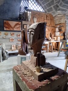 Lorsque j’ai reçu cet hiver mes futurs stagiaires pour une initiation à la sculpture sur bois, Daniel et Véronique ont été tous deux séduits par un portrait inspiré de Amadéo Modigliani que j’avais réalisé dans du Chêne vert en 2024. Nous avons alors décidé de consacrer le stage de 5 jours fin Mars-début Avril à la réalisation de portraits sur le même thème.